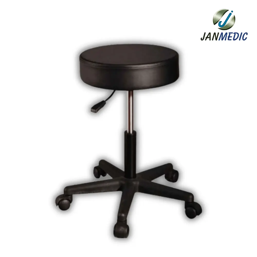 • Piso Taburete Redondo con 5 Ruedas para sentarse y desplazarse dentro de una habitación o donde sea necesario para distintitos puestos de trabajo donde sea fundamental estar sentado cómodamente y buena movilidad.